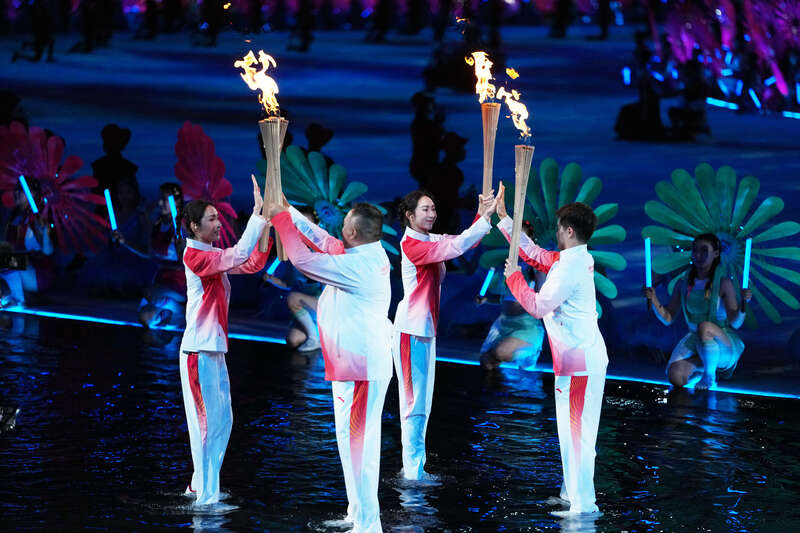 在开幕式主火炬点燃仪式上,“全国道德模范”赖宣治是唯一非运动员火炬手。虽然他不是运动员,却培养出52位跳绳世界冠军。他首创“无影脚”跳绳法,带领学生打破13项世界纪录,推动跳绳成为全民健身潮流。