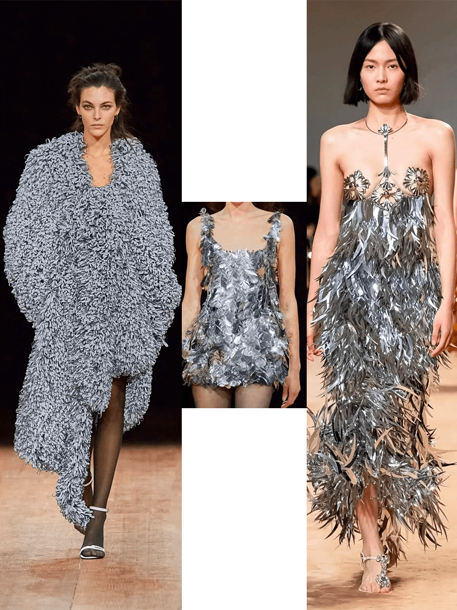 2023/24有关的流行中,以金属银色颜色为主,这些金属的银色颜色在清冷的色调中,传来了一些冷意。