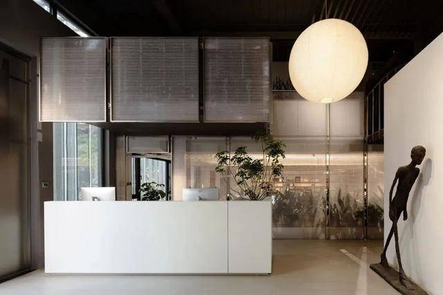潘天云选择将设计团队最密集的办公区整体置于一楼,并通过半透明的PC阳光板材质,营造出一种“可见却非直白”的视觉缓冲。